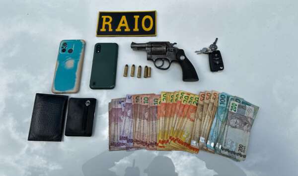 Os suspeitos, de 19 e 33 anos, que tentaram lograr êxito na fuga, foram encontrados e, com eles, foi apreendida a arma utilizada para praticar o crime, um revólver e cinco munições calibre 38. Também foram apreendidos pelos policiais militares: o automóvel utilizado como apoio, a motocicleta usada para praticar o crime e mais dois aparelhos celulares.