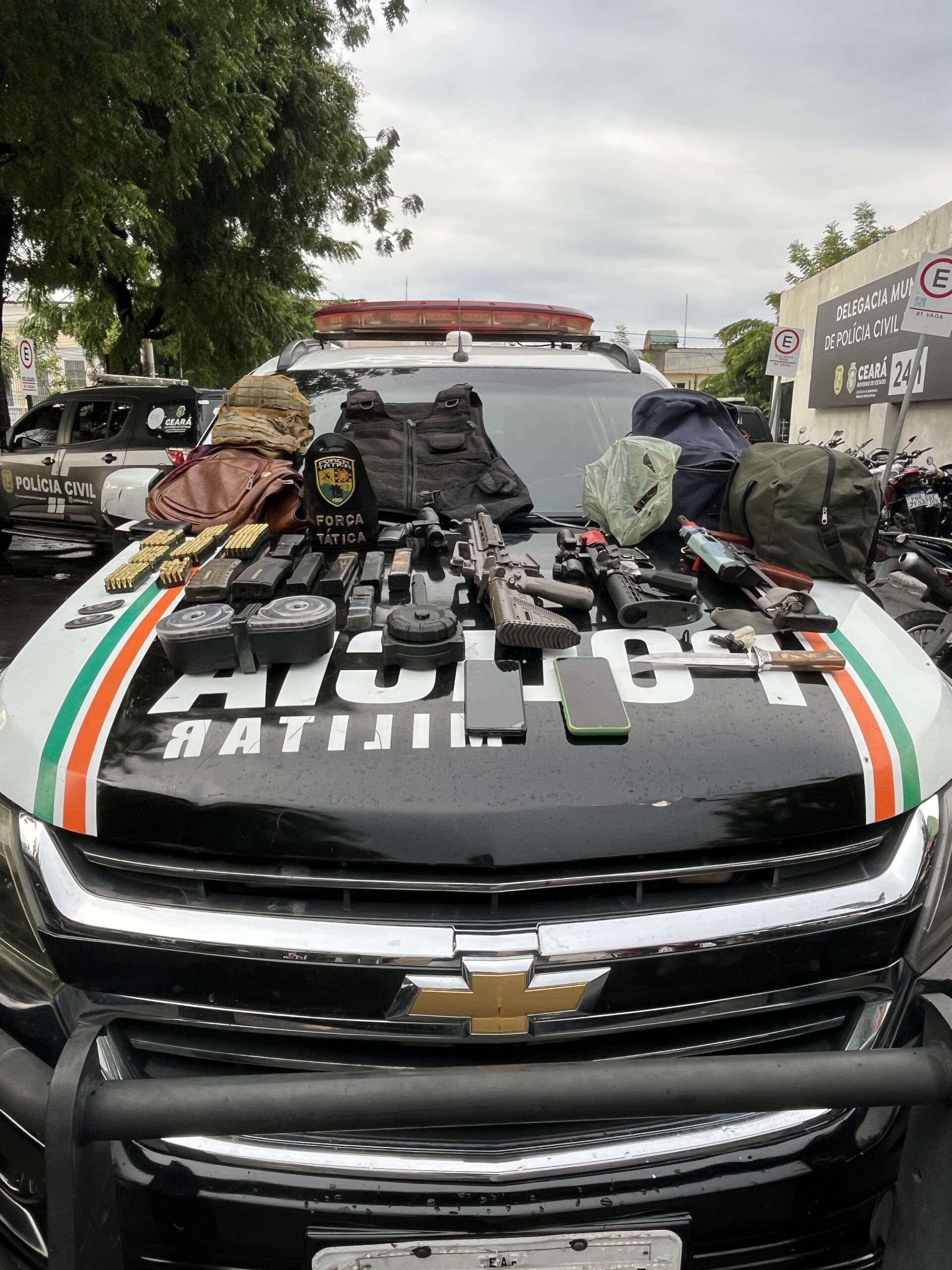 A Polícia Militar do Ceará (PMCE) apreendeu dois fuzis, uma arma artesanal e 567 munições durante operação realizada nesta segunda-feira (9), no bairro Novo Caiçara, em Sobral. A ação resultou na captura de cinco suspeitos e na recuperação de dois veículos roubados.