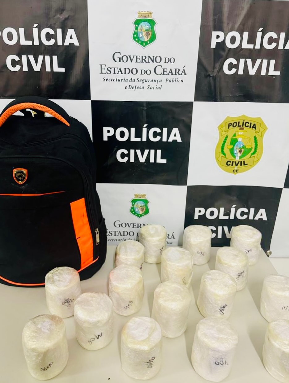 A droga estava em poder de Beatriz Vasconcelos Pereira de 20 anos natural de Fortaleza-Ce e residente no município de Marco a qual não respondia procedimentos criminais